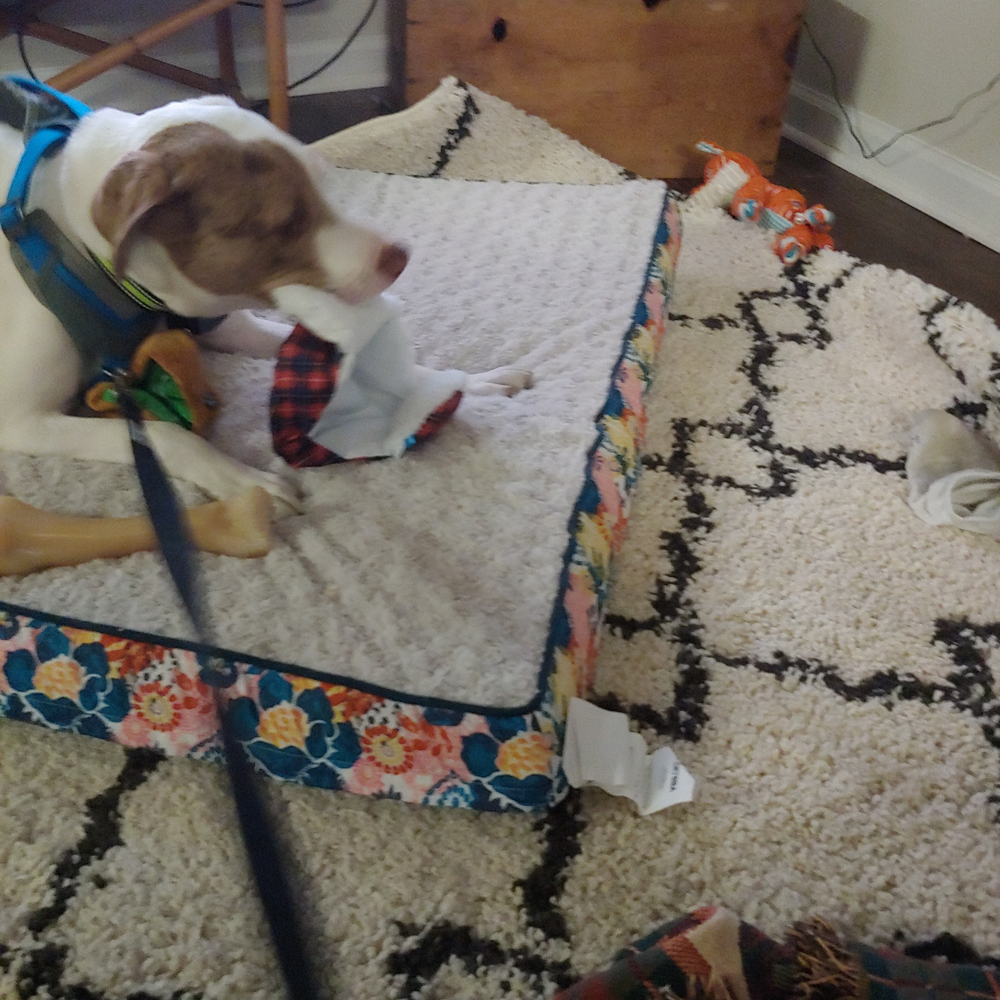 This toy got a 4/5 because man it was fun to play with, it wasn't a ball either so I was able to tug and pull on it while it was on the ground. I can crinkle it up and fit it in my mouth which is fantastic, so it becomes portable. I am definitely going to be taking it on some walks again, people love seeing my toys. I just know it.